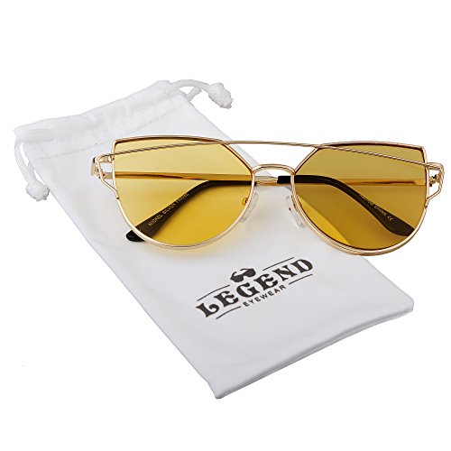 Cat Eye Lightweight Fashionable Solid Sturdy Metal Frame Women Sunglasses (Gold, Yellow Candy)