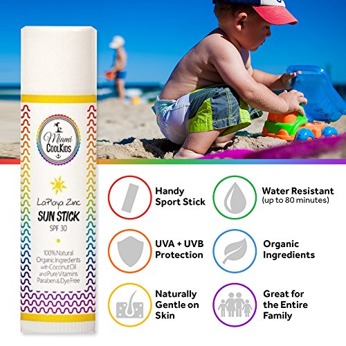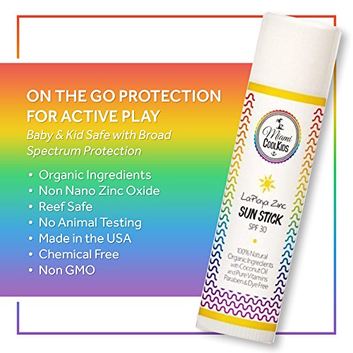 Miami Cool Kids Organic SPF 30 Sunscreen Stick is available now on Amazon. This 100% natural sunscreen helps protect children and babies from harmful broad spectrum UVA/UVB rays. This sunscreen is a great choice for whenever you need extra sun protection for sensitive skin. Miami Cool Kids is the best organic sunscreen to help prevent sunburn. This organic sunscreen is the best sunscreen if you like to spend time in the water because it is water resistant. Due to its handy stick design, this sunscreen wipes on easily. It is made with the highest quality organic ingredientsSafe foe all children and babies over 6 months. This children's sunscreen is gluten free, paraben free, dye free, chemical-free, BPA-free and Crulty Free and offers broad spectrum protection. This SPF 30 sunscreen contains non-nano zinc which is a natural mineral. Absoultuly no chemicals that seep into your skin. Protect your family from UVA and UVB rays. This is also an excellent Sunscreen for adults.Feature