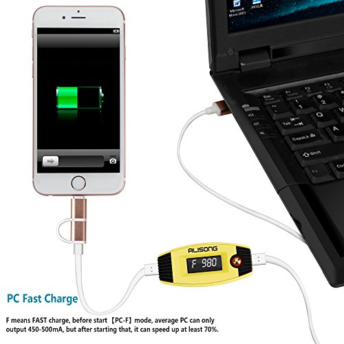 PC fast charge: Under “PC-F” charging mode, generally PC can only output 450~500mA, using our product, the output current can increase above 70%.
