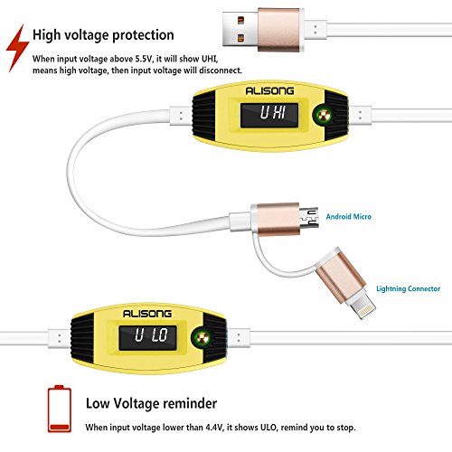 Alisong 2-in-1 dual connector Lightning & Micro USB 2.0 sync charge data cable (3.5ft);Avoid being over-charged for iPhone 6s 6Plus 5s,iPad mini4,Samsung, LG,Android Smartphones and More (Yellow)