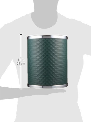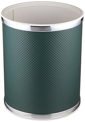 - Diamond pattern embossed green vinyl wastebasket with silver mylar trim