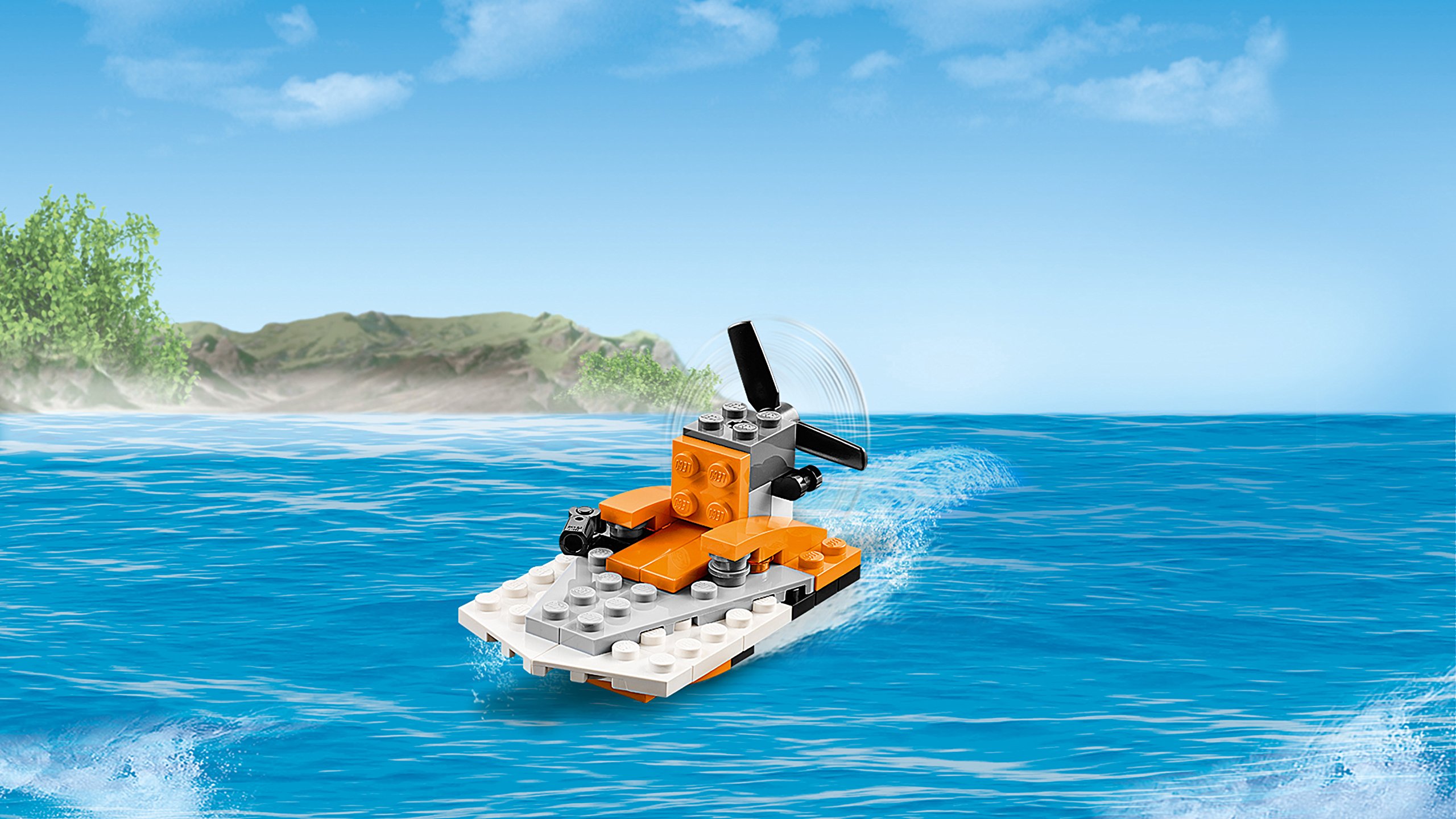 Once the flight is over, you can transform the seaplane into a powerful propeller ship or an ultra-fast catamaran ship.
