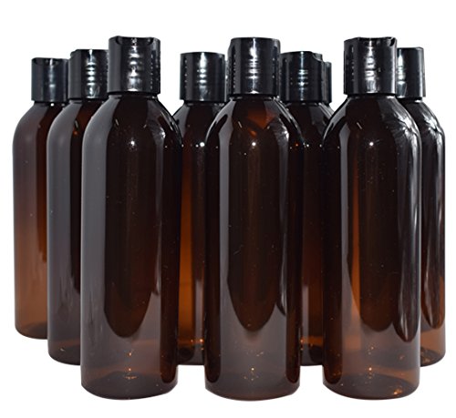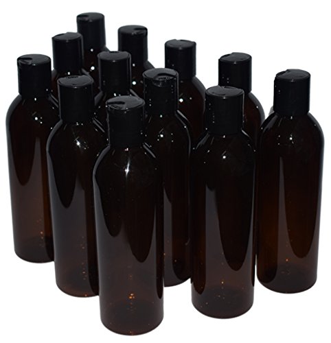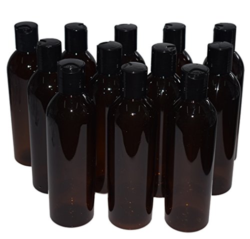 Bekith 12 Pack 8 ounce Amber Empty Plastic Bottles with Disc Top Flip Cap; BPA-Free Refillable Containers For Shampoo, Lotions, Liquid Body Soap, Creams