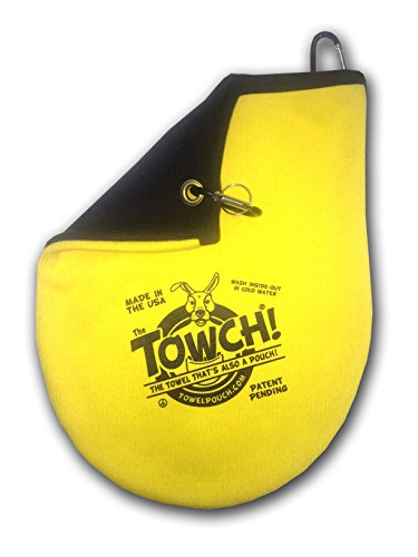 What Is a Towch®? A Towch® is a simple, but ingenious product. The basics are this: • It's a Towel • It's a Pouch • Thus the name Towel-Pouch... TOWCH® The smooth outside of our towels are printable and high strength cotton. The inside is a course, looped cotton fabric for textured, cleaning power. How Do You Use a Towch®? You put your disc in it and wipe the disc clean without having to get your hands dirty. You can even reverse the Towch® on your hand and pick up the disc like you were picking up dog-pooh with a plastic bag, never touching the wet, dirty or muddy disc with your hand. Simply pull the disc back inside the Towch® and rub it clean from the outside. A really wet disc can simply be left inside to dry until you need it again. How Is a Towch® Better Than a Towel? You can put your disc inside a Towch®. You can't do that with a typical golf towel, can you? You can use the Towch® as an add-on putter pocket. Try to get the average towel to hold onto your discs for you. When you've maxxed out your bag's storage capacity, just add a Towch® for extra space. You can wear a Towch® as a hat. No standard towel works like that, does it? Wet it in the heat of summer for a nice cool wrap. Keep it dry (and clean) for a nice set of warm ears in winter. You can wear your Towch® as a 3-disc casual-round bag. Play a fun-round of golf with friends and carry a putter, mid and driver right inside your Towch®. You can even wear it on your belt or belt loops using the TWO included carabiners. Your old-standard cleaning device is found lacking, huh? In What Colors Can I Get a Towch®? Currently, Towches® are being produced in the following colors: • Rowdy Red • Basic Black • Optical Orange • Grassy Green • Nautical Navy • Yummy Yellow • Carolina Clay • Groovy Gray • Galactic Green • Perfect Pink • Passionate Purple Towches® are a very diverse product, to be so simple. What can you use your Towch® for?