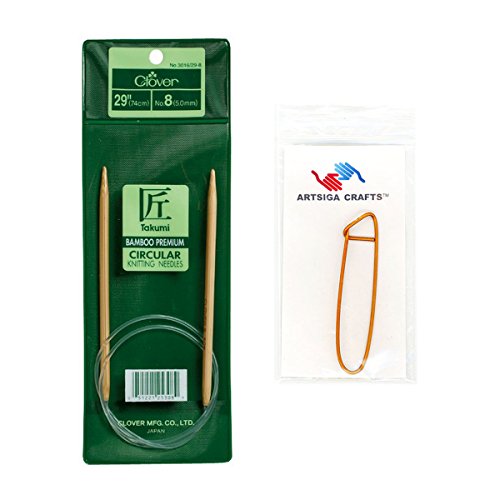 - Bundle includes 1 Clover Takumi Bamboo Circular Knitting Needles 29 inch Size 13/9mm with 1 Artsiga Crafts Stitch Holder 3016/29-13