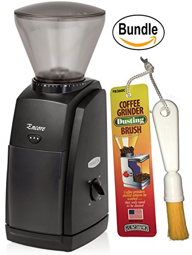 Baratza Encore 485 Conical Burr Coffee Grinder - Burrs: Manufactured in Europe, the Encore's 40 mm conical burrs will grind for many styles of coffee. Conical burrs grinders are exceptional at producing consistent grinds from very fine to very coarse as well as being durable and will remain sharp for many years. Gearbox: In 2012, Baratza introduced the second generation Gearbox (GB 2.0). With GB 2.0, Baratza has significantly increased the strength and durability of the drive transmission while decreasing noise. Grind Adjustment: Turn the hopper and with 40 settings you can quickly adjust from fine for espresso to coarse for French Press. The grind range is from 250 to 1200 microns. Grinds Left in Grinder: To maximize freshness, the Encore minimizes the ground coffee left in the grinder. Brewing Methods: The Encore is a great grinder for manual brewing and espresso. Motor: A powerful, high torque DC motor effortlessly drives the burrs. This motor turns slowly resulting in cool, quiet operation and permits long grinding duty-cycles. The circuitry is equipped with an automatically resetting, thermal cutoff switch. Calibration: An innovative burr calibration system ensures that each grinder has the full range of grind. If necessary, the grinders can be user calibrated. Speed Control: With unique speed control, the Encore uses a combination of gear and electronic speed reduction to control the rotation of the burr to 450 RPM. The electronic speed controller is adjustable from 405 to 495 RPM in the event that specific user conditions require modification of the speed. This slow speed reduces heat, noise, and static generation in the grinder. -- (US 100-120V for use within the USA.) >>> 1 x Brushtech Coffee Grinder Dusting Brush (B00L4SGOHU) - Efficiently cleans out leftover, stale grounds and coffee powder. To ensure coffee flavor at its freshest, clean with our marvelous dusting brush. It will efficiently clean out leftover, stale grounds and coffee powder.Feature