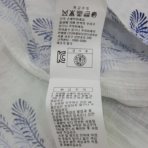 버튼 클로징으로 깔끔하게 마무리 가능하며 안감이 따로 구성되지 않아 이너 착용에 주의가 필요합니다