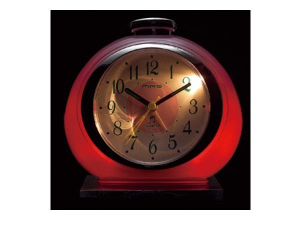 しっかりと時を刻むステップ秒針。ピンクのカラーと丸いデザインが可愛い目覚まし時計です♪