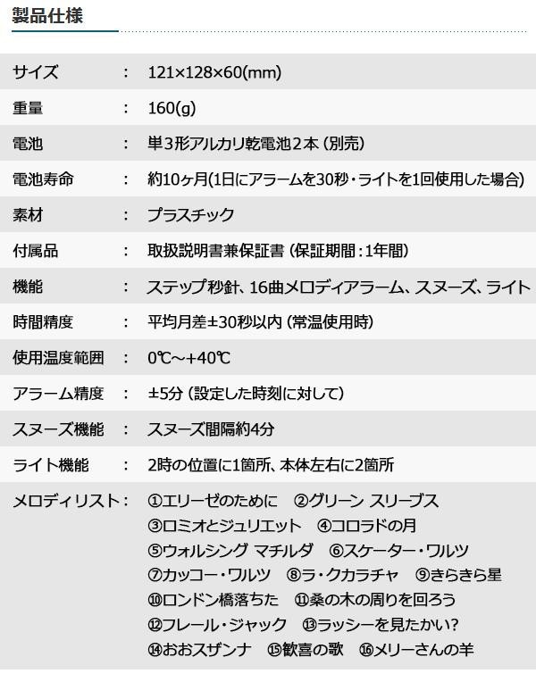 fk094igrjsしっかりと時を刻むステップ秒針ピンクのカラーと丸いデザインが可愛い目覚まし時計です サイズ 個装サイズ:14×14×7cm 重量 個装重量:215g 生産国 中国 16曲のメロディが内蔵された目覚まし時計 しっかりと時を刻むステップ秒針ピンクのカラーと丸いデザインが可愛い目覚まし時計です