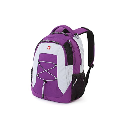 -. Feature : Head back to school, around town or on your next weekend adventure in style with the Swiss Gear purple laptop backpack. / Large main compartment with built-in padded, laptop sleeve designed to fit most 15" portable computers / Integrated, padded tablet pocket and 2 mesh side pocket drink holders. / Padded, Airflow back panel with mesh fabric for superior back ventilation and support. / Organizer pocket with key clip and divider. Ergonomically contoured, padded shoulder straps with breathable mesh. - 19"
