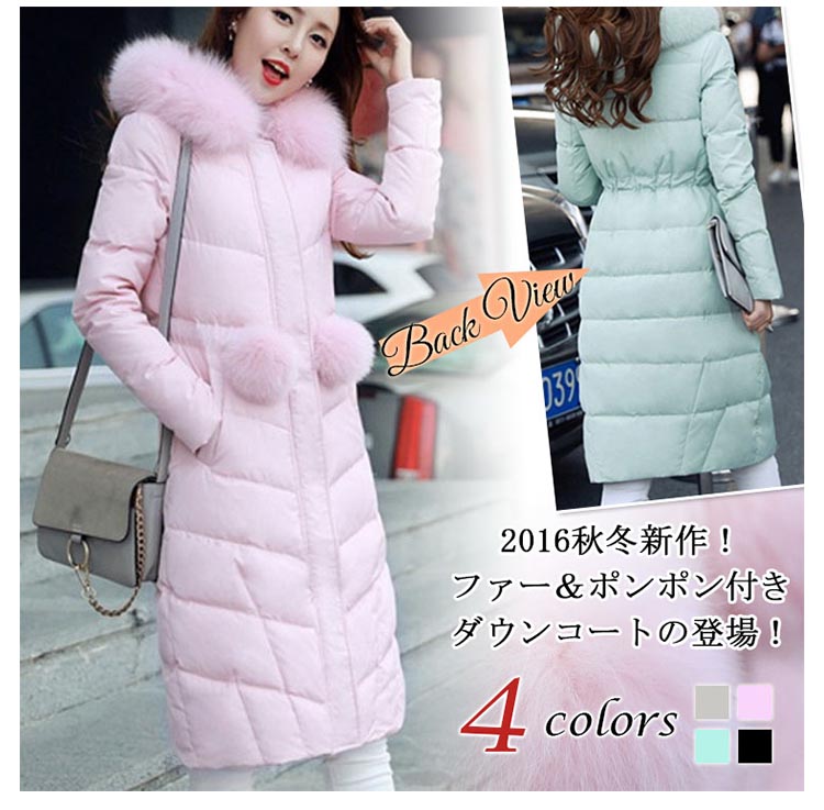 | 2016秋冬新作!ファー&ポンポン付きダウンコートの登場!寒い冬もこれさえあれば、暖かく過ごせる最強アウターです!!ウエストポンポン付きまたは調整可能で着膨れせずすっきりとした女性らしい美ラインを演出☆選べる4カラー&5サイズのも嬉しい!ディテールやシルエットにこだわったダウン…超お得Priceなので絶対見逃し禁止です☆ | |