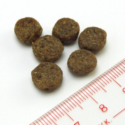 素材構成:粗たんぱく質…25%以上、粗脂肪…15%以上、粗繊維…4%以下、粗灰分…8%以下、水分…10%以下、代謝カロリー…348kcal/100g オメガ6…2.3% オメガ3…0.7%