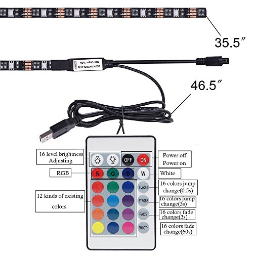 ✔ Easy Installation - 35.4'' Strip + 46.45'' USB cable + A Spare 3M Adhesive Tape , High-brightness 30 quality LEDs, Cut the Led Strip with Scissors On the Cut Marks (White Lines) to desired length( As needed); Remove the adhesive backing on the strips. Firmly Press the strips to the rear of your tv approx. in the center between top and bottom, then connect the USB TO USB port