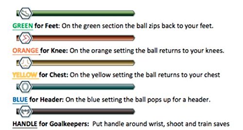 -. Feature : Train game-like ball receiving with every body part anywhere, by yourself. / Develop the best first touch on your team and become a master of ball control / Ball comes back to your feet, knees, chest, head, or hands when kicked depending on the setting. / Spins freely so it doesn't tangle and feels like a real pass from a teammate as it returns. / Quality is backed by the company. Satisfaction guaranteed.