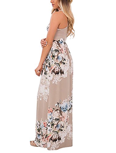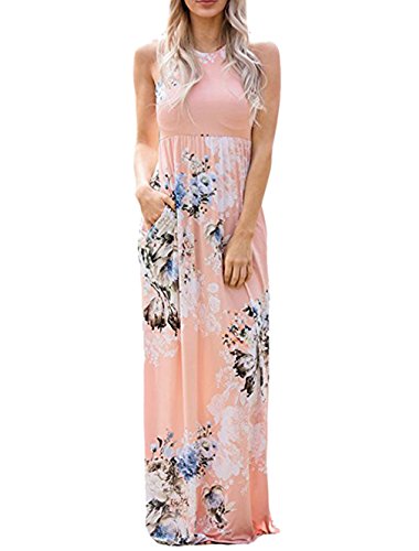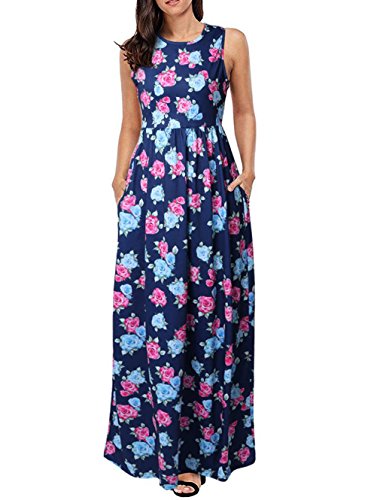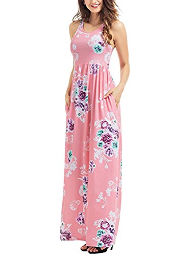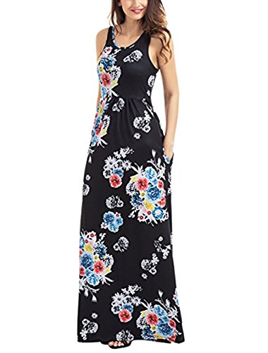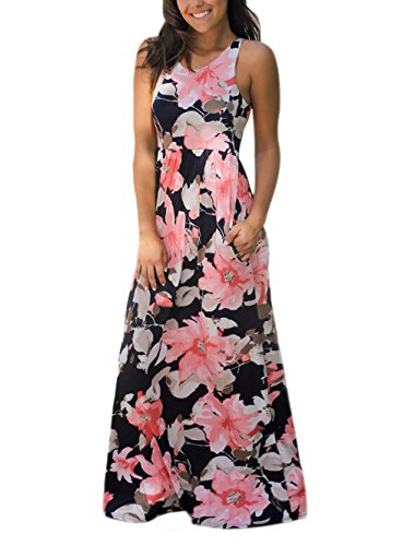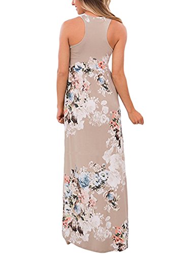RAISEVERN Women Vintage Floral Print Summer Sleeveless Round Neck Racerback Maxi Dress Material:Cotton Polyester
