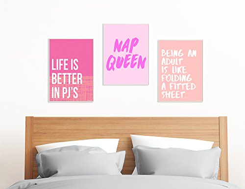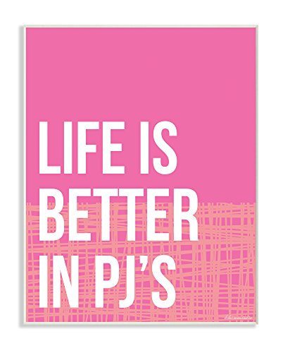 Stupell Home Décor lulusimonSTUDIO Life Is Better In Pjs Pink and Orange Wall Plaque Art, 10 x 0.5 x 15, Proudly Made in USA