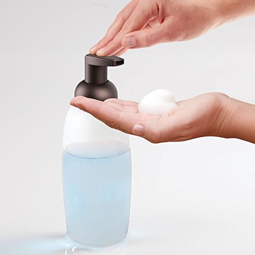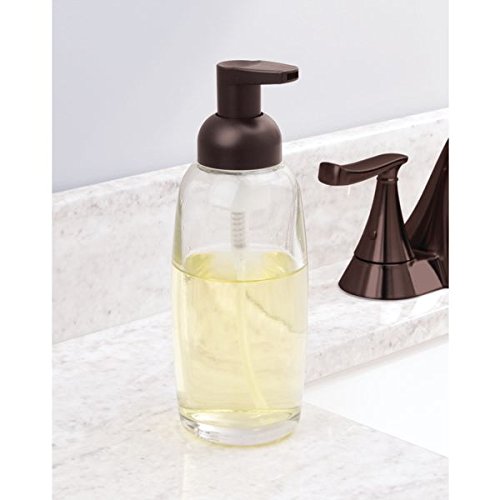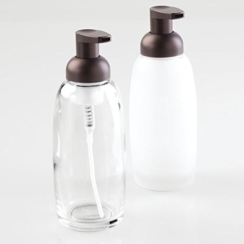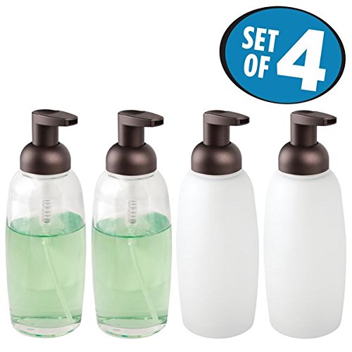 mDesign Foaming Glass Soap Dispenser Pump, Four-Piece Bathroom Accessory Set- Clear/Bronze, Frost/Bronze