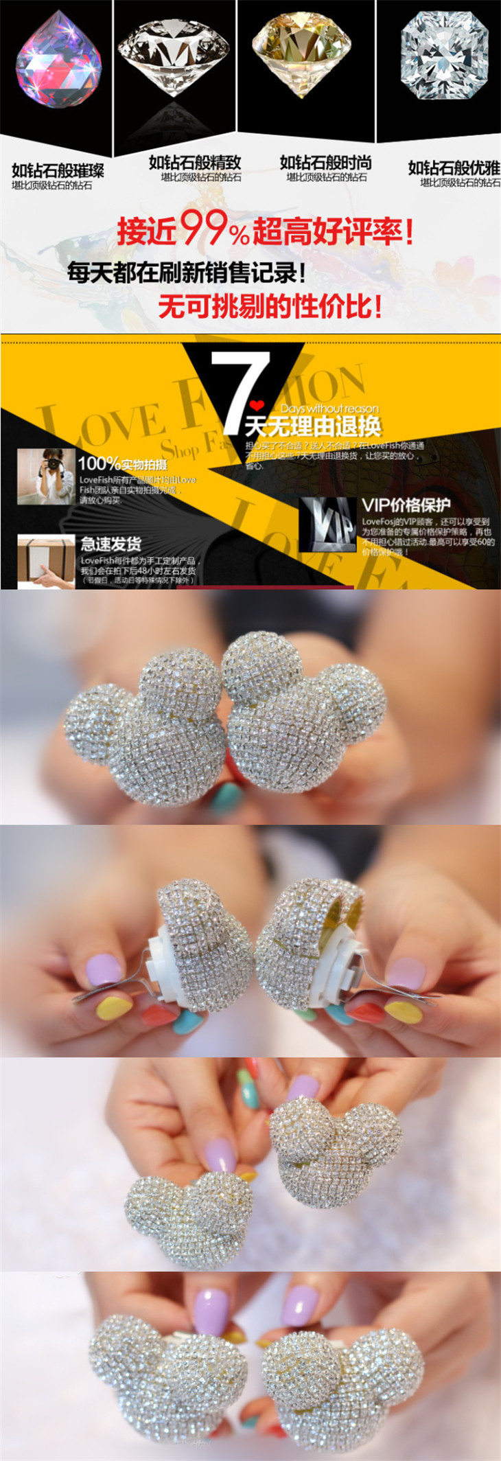 永不变色 永不变形!!是除了施华洛世奇最好的水钻!非常有分量