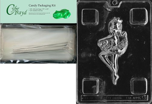 Cybrtrayd Mdk25S-K013 Ballerina Kids Chocolate Candy Mold with Packaging Bundle, Includes 25 Cello Bags, 25 Silver Twist Ties and Chocolate Molding Instructions