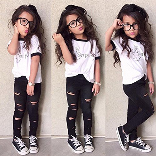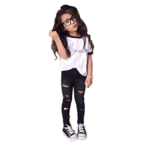 -. Title : 2 Piece Baby Girls Letter T-shirt Ripped Pants Clothing Set Outfit