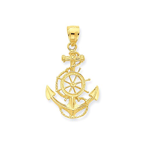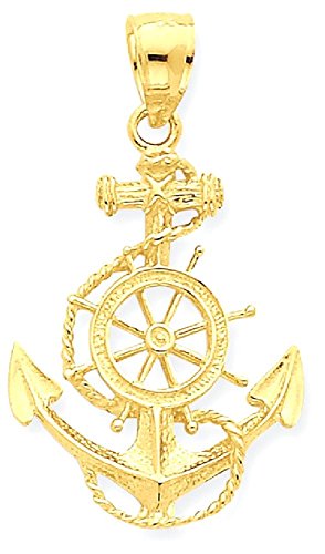 ICECARATS DESIGNER JEWELRY 14K YELLOW GOLD NAUTICAL ANCHOR SHIP WHEEL MARINERS WHEEL PENDANT CHARM NECKLACE