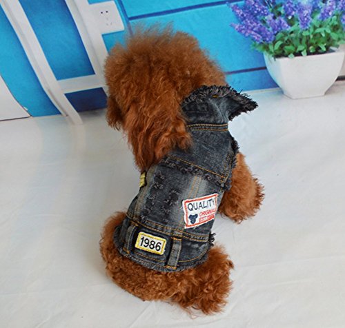 Condition: New Net Weight: 80g-140g (approx) Size chart: XS, back: 7.1", chest: 12.2", fit for 2~3Lb S, back: 8.7", ches: 13.8", fit for 4~6Lb M, back: 9.8", chest: 15", fit for 6~9Lb L, back: 11", chest: 17", fit for 9~11Lb XL, back: 12.6", chest: 18.9", fit for 11~13Lb XXL, back: 13.8", chest: 20.9", fit for 13~18Lb Package includes: 1* Demin Jacket 0