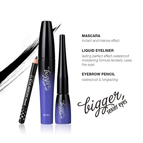 -. Title : MagiDeal Pro 3 Pieces Waterproof Eyelash Long Curl Mascara Cosmetic Liquid Eyeliner Eyebrow Pencil Makeup Set Black