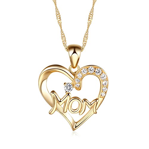 TEJ 925 Sterling Silver Gold Tone Mom Heart Pendant Necklace Including Singapore Chain 16 - 20 Inch