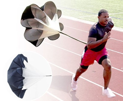 -. Binding : Misc. -. Brand : QualityHealth -. Color : Black -. EAN : 0701712244002 -. Feature : Fully functional unit includes parachute and belt with velcro closure / Mesh panels provide stability and reduce shifting. Chute opens as running begins and attaches with an easy adjusting harness / Quick release strap provides easy release into overspeed. Easily folds down to fit in the carrying bag included / 25 lbs of resistance / Material: Polyester / Diameter: Approx. 56 inch / Adjustable Waist: Approx. 20-42 inch -. IsAutographed : 0 -. IsMemorabilia : 0 -. Label : Thailand -. Manufacturer : Thailand -. MPN : LYSB00KA7EMA2-SPRTSEQIP -. PackageQuantity : 1 -. PartNumber : LYSB00KA7EMA2-SPRTSEQIP -. ProductGroup : Sports -. ProductTypeName : SPORTING_GOODS -. Publisher : Thailand -. Size : 56 inches -. Studio : Thailand -. Title : Extra Large 56" Speed Training Wind Air Resistance Parachute Sports Power Running Chute Ideal for Athlete -. UPC : 701712244002