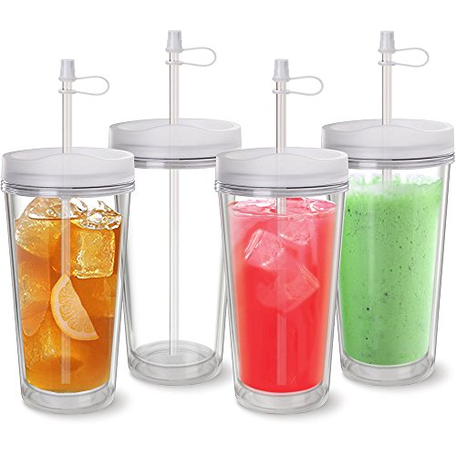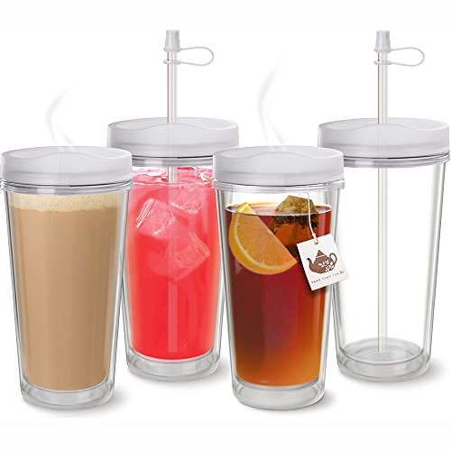 -. Feature : USA Made Acrylic Tumblers with Lid & Straw / Double-Wall Insulated / Set of 4 Top Rack Dishwasher Safe Tumblers / Ideal for Hot or Cold Beverages - 16 oz. / 2 Extra Bonus Straws Included!