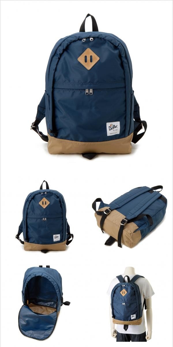 | 商品詳細 | Drifter ドリフター ドリフターは、ブランドの創業から35年間、変わることなく「made in U.S.A」にこだわり、熟練の職人によりすべてハンドメイドで作られたアイテムは、1点1点がそれぞれの個性を持っています。 生活が多様化し、多くのものが大量生産大量消費されていく現代でも、製品を作るDrifterの精神は変わりません。 仲間を大切にする事。その想いを胸に、世界中、自然と都市との生活をつなぐDrifter(放浪者)であること。 それぞれの生活の中での価値ある存在になる事。 それが、drifterが変わらず追い求める信念です。 こちらのバッグはベーシックなフォルムに施されたレザー使いがお洒落なリュックサックになります。 カジュアルシーンにピッタリです。 サっと開閉できるダブルファスナー仕様で開口部が広く、荷物の出し入れがスムーズ。 フロント部分に設けられたポケットは、手帳や小型ガイドブックの収納に。 サイドには携帯や音楽プレイヤーに丁度いいポケット付きです。 メイン収納部分はB4サイズに対応しており、収納力もありますので短期旅行にもおすすめです。 | ||