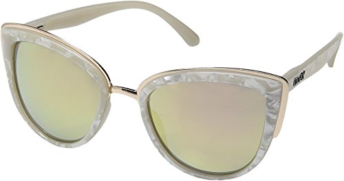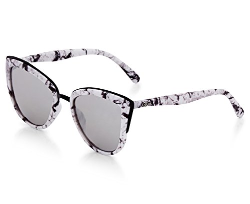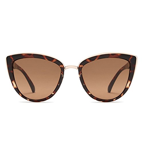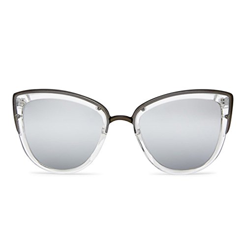 These glossy Quay cat-eye sunglasses are trimmed with polished metal. Logo lettering at the temples. Soft case included.