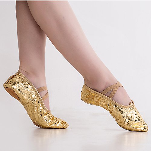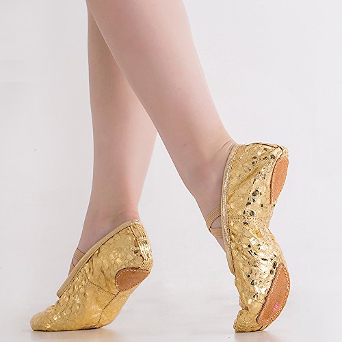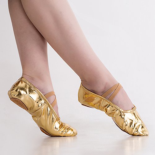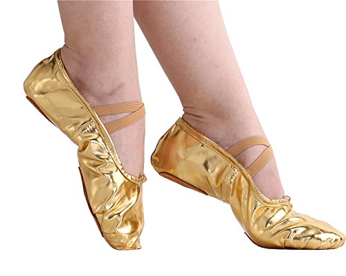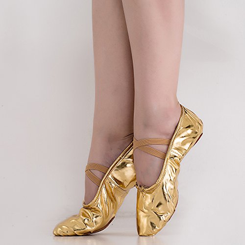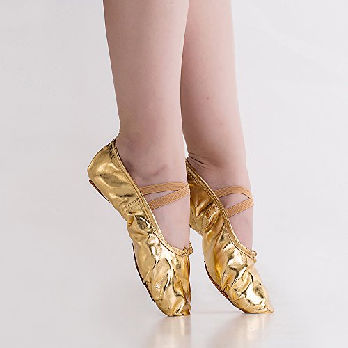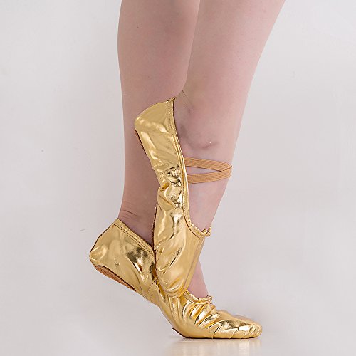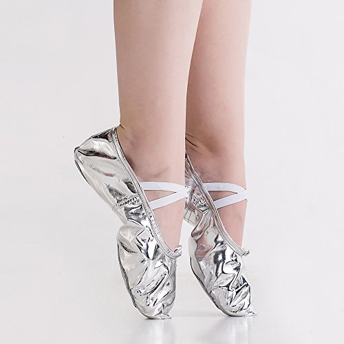 Women's Bright PU Leather Ballet Belly Slippers Ballroom Dance Shoes with Suede Split-sole