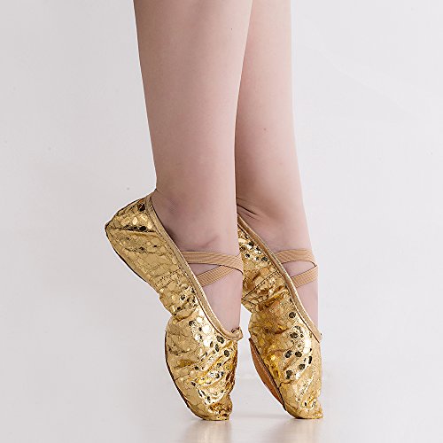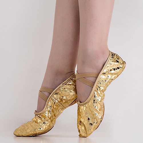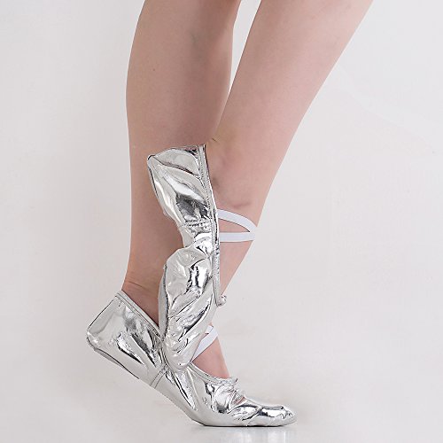 Product Description Add sparkles with this bright gold, silver patent leather ballet belly slippers. the bright pu leather material will reflect lights. Comfortable suede sole. Light Weight. 0