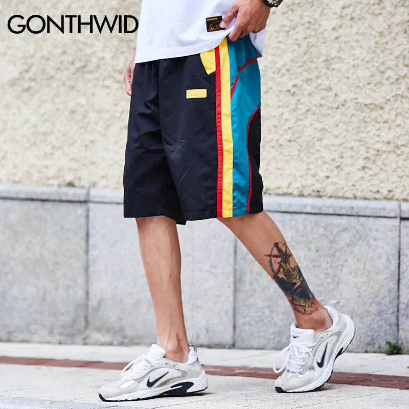 Fashion:Color Block Patchwork Shorts
