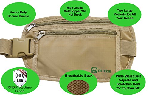 Studio : ATXmart Publisher : ATXmart Binding : Misc. Product Description The OUTZIE Travel Money Belt provide ultimate security and comfort whether you are traveling around the world or walking around the park. Never worry about losing your valuables. The OUTZIE Travel Wallet will keep your valuables out of the hands of pickpockets and thieves. Completely hands free and secure as the pouch is hidden beneath your clothing. Comfortable elastic waist band adjusts for all sizes from small children to full size adults. This product is fully guaranteed full satisfaction or your money back. Full RFID protection with RFID blocking fabric on the front panel. 0