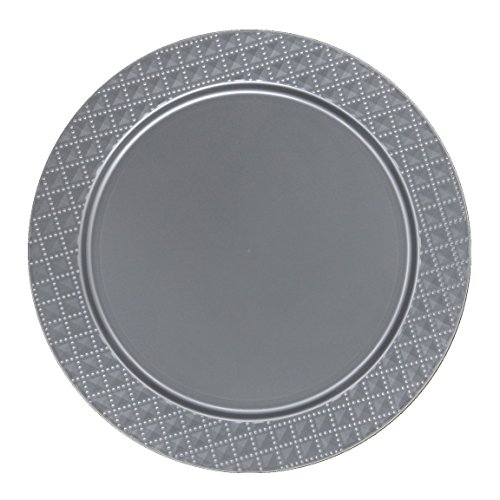 Studio : Posh Setting Publisher : Posh Setting Product Description Hosting a party? Enhance the look of your table and awe your guests with these Fine Heavyweight Silver Plastic Chargers. With its Elegant Diamond Design border, these Chargers are sure to bring your event to the next level. Quit the hassle of washing dishes go green go Disposable a luxurious look of china at a fraction of the cost Great for weddings, Receptions, Birthday parties, Baby showers, holiday and family gathering, or any Catered special event 0