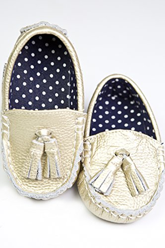 -. Title : Golden Glam Baby Loafer Shoes Leather and Fabric Lined Moccasin