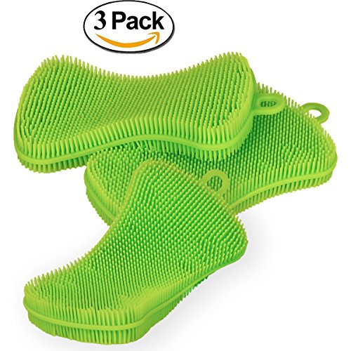 -EasyLife Silicone Sponge Scrubber 3 Pieces Non-Scratch Green Antibacterial Multipurpose (Scruber, Brusher, Washer)