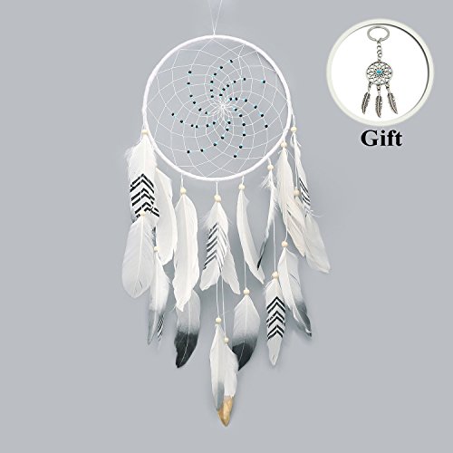 2 PCS Dreamcatcher + Dream Catcher Keychain Gift Traditional Handmade Dreamcatcher Native American Dream Catchers Decoration Home Walll Car Ornament Dream Catcher for Girls Boys Kids – White