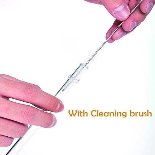 - ◀ Package include 6pcs 9inch Transparent Straight glass straws (230mm * 10mm ) , 2pcs Cleaning Brushes (200mm)