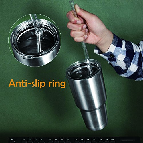 Straws for YETI,RTIC tumbler, Reusable Clear Transparent Straight Glass Drinking Straws, Set of 6 with 2 Cleaning Brushes
