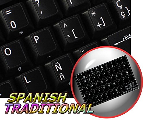 SPANISH TRADITIONAL NEW NON-TRANSPARENT KEYBOARD DECALS BLACK BACKGROUND FOR DESKTOP, LAPTOP AND NOTEBOOK