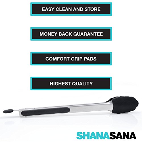 (Shanasana)/Kitchen Dining/Cook's Tools Gadgets/DIRECT FROM USA/12" Kitchen Tongs (INCREDIBLY DURABLE STAINLESS STEEL) Silicone Tips Ergonomic Soft Grips - P...
