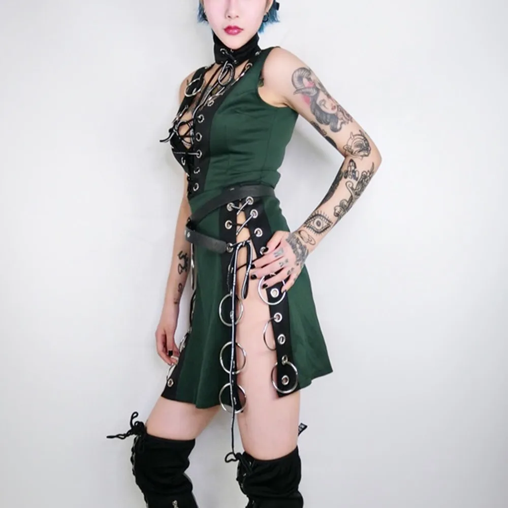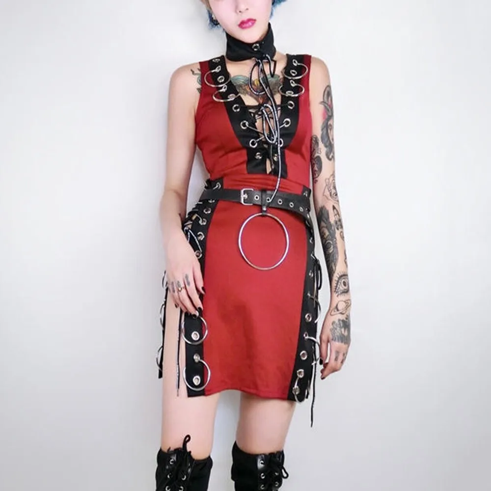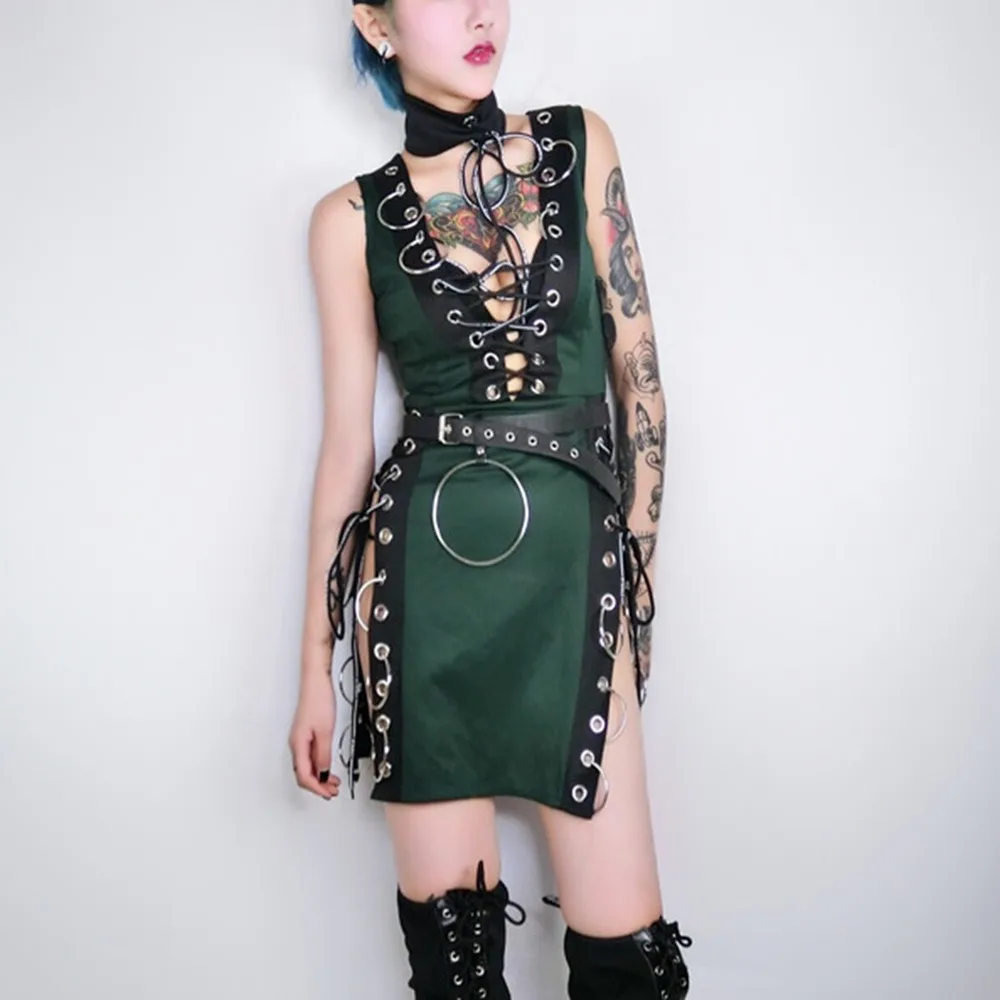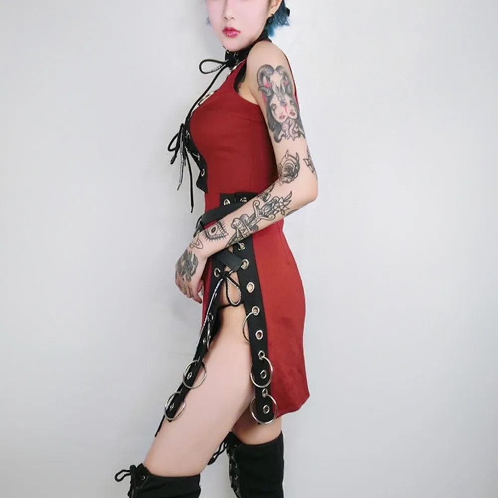 Embellishment:Patchwork,Lace-Up,Split