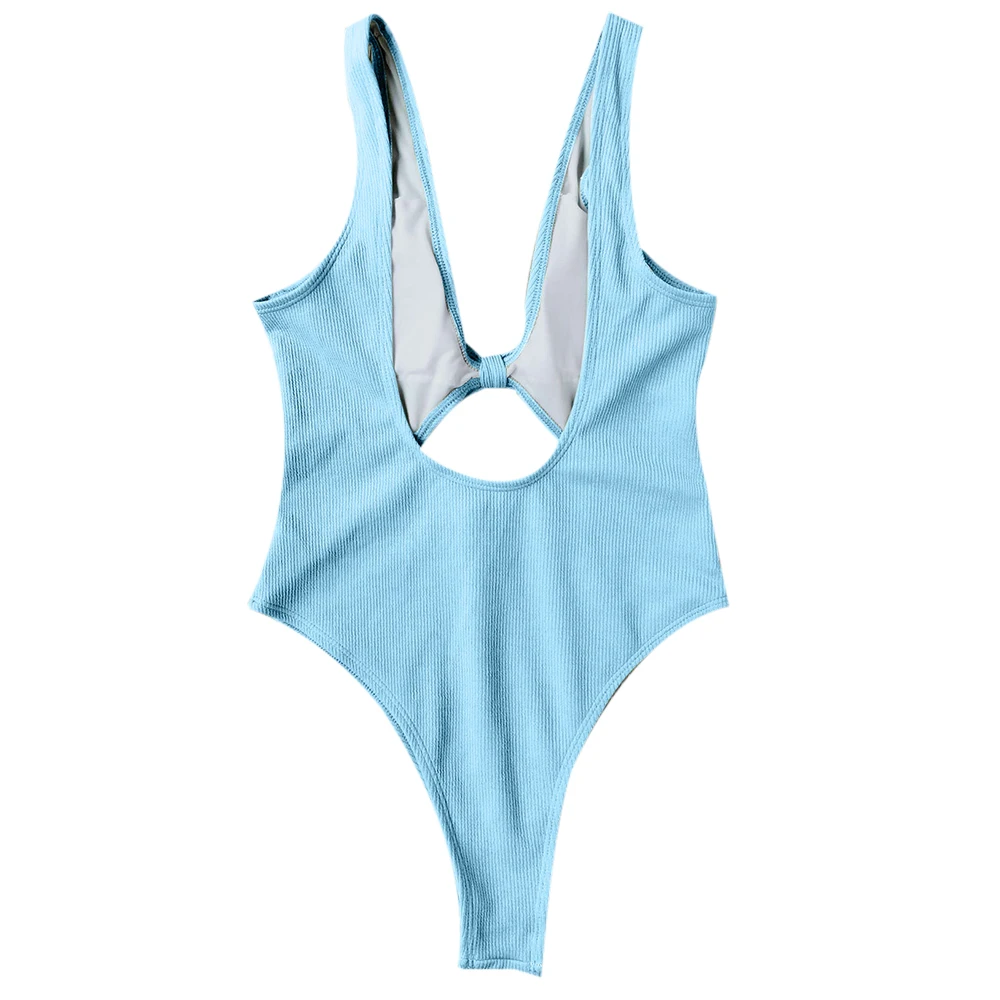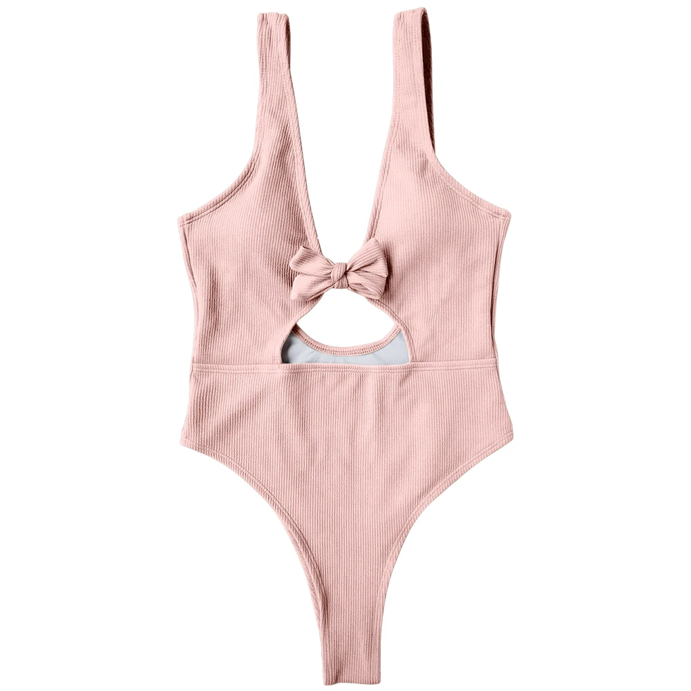 Turn heads at the beach in this bowknot front one piece swimwear with plunging neck, cutout front,low open back and high cut sides that visually elongate you legs.padded.
