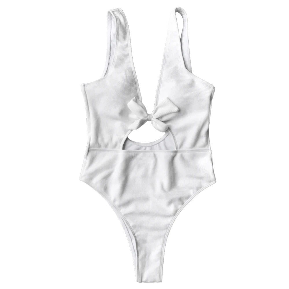 Swimwear Type: One Piece Gender: For Women Material: Cotton,Polyester Bra Style: Padded Support Type: Wire Free Neckline: Plunging Neck Pattern Type: Bowknot Waist: High Waisted Elasticity: Elastic Weight: 0.234 kg Package Contents: 1 x Swimsuit