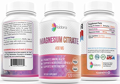 SUPPORTS MUSCLE RELAXATION - Magnesium is a mineral needed for more than 300 biochemical reactions in the body. Fladora's Magnesium Citrate helps to relax muscles and maintain an already normal blood flow.