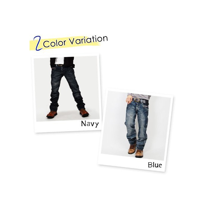 원본상품명: ワインレッドステッチ ストレトデニムパンツ ジンズ メンズ Lサイズ ネイビ