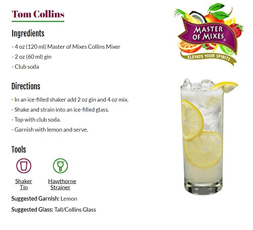 Master of Mixes Collins Drink Mix, Ready to Use, 1 Liter Bottle (33.8 Fl Oz), Pack of 6